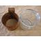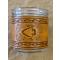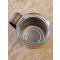 Mug ou tasse en verre d'une contenance de 25cl, recouverte de cuir à tannage végétal avec motif "pointe de flèche", travail d'estampage manuel traditionnel; teinture à l'ancienne, la partie cuir est amovible afin de pouvoir laver facilement le bocal en verre. Le travail du cuir est entièrement fait à la main, ici en Charente.