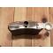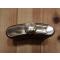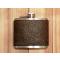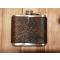 Flasque à alcool en acier d'une contenance de 15cl, recouverte de cuir à tannage végétal estampé motif floral style Sheridan, teinture couleur medium brown; le travail du cuir est entièrement fait à la main, ici en Charente.