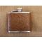 Flasque à alcool en acier d'une contenance de 15cl, recouverte de cuir à tannage végétal estampé motif floral style Sheridan, teinture couleur tan; le travail du cuir est entièrement fait à la main, ici en Charente.