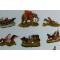 Ensemble de chromolithographies gaufrés découpés attelage de divers animaux : chevaux, éléphants, bovins