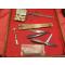 Important  Lot militaria , il y a un très ancien mètre avec les ancienne mesure, un pied a coulisse,  un lavoir a ficelle, et divers objet …..