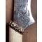 Beau et imposant couteau fabriqué par un forgeron français passionné, cette pièce est unique bien sûr. Lame forgée polie et travaillée à l’acide, patte de loup. Superbe pièce (voir photos)