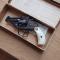 Des plaquettes en nacre avec médaillon Smith et wesson viennent compléter cette arme.