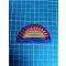 Fabrication : Construction complexe dite "multi-pièces". Le demi-disque solaire et les rayons sont découpés dans un feutre jaune de qualité, puis appliqués sur le fond bleu. La précision de la découpe des rayons est remarquable pour une pièce d'époque.