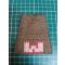 Fabrication : Construction complexe dite "multi-pièces". Le « A » est une pièce de feutre noir découpée et appliquée sur le fond kaki, tandis que le château est finement brodé en fil de coton rouge.