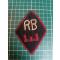 Motif : Le design présente un losange noir bordé de rouge. Dans la partie supérieure, les lettres « RB » sont brodées en fil de coton beige. Dans la partie inférieure, on retrouve le château à trois tours, symbole universel de l'US Army Corps of Engineers, brodé en fil rouge.
