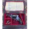 L’arme est vendue dans un joli coffret ancien en bois, avec intérieur en feutrine rouge, compartiments formés, et sa clé. Le coffret présente beaucoup de charme et met parfaitement en valeur le revolver.