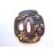 magnifique tsuba en shakudo et or figurant des samurais d'un coté , un pont sous un pin de l'autre = en trés bon état = voir photos