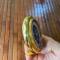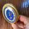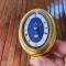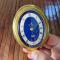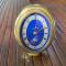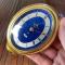 JAEGER - LECOULTRE Réveil - pendulette de voyage, cadran ovale, guichet à 6 h pour les jours, fond lapis lazuli avec paillettes d'or fin et boîtier en métal avec sa dorure d'origine . H : 7,5 - L : 9 cm - en l'état Swiss made