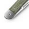 Le manche en micarta vert, cadre et mitre en titane gris.