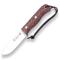 Manche en micarta rouge bordeaux ergonomique qui épousera parfaitement les lignes de votre main avec une sécurité fixe avec demi-garde.