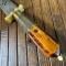 Manche octogonale en bois exotique double filigrane laiton et acier , pommeau bille en os , garde en corne .