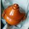 Joli pot en terre cuite émaillée style provençal, fabrication artisanale francaise fait main, hauteur totale environ 23 cm, sans couvercle environ 15 cm, diamètre de l’ouverture environ 12 cm, bel etat , couleur moutarde foncé .