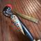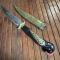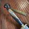 Manche en corne sculpté en oiseau avec incrustation coloré, laiton , fil argenté etc....