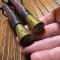 Belle état, pommeau bronze , garde à double anneaux en bronze , fusée à section carrée en bois recouverte de basagne cuir .