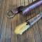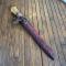 Dans son fourreau de bois habillé de cuir rouge avec anneau de suspension