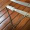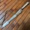 Manche et fourreau en métal argenté typé maillechorts avec diverses gravures sur l'ensemble , passant de ceinture sculpté en Angelo , chaînette de suspension, lame montée pleine soie .