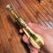 Arme de décoration, en métal jaunie de style bronze , plaquettes de crosse composites dans le style de matière noble gravée de motifs .
