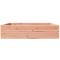 Jardinière 100x100x23 cm bois massif de douglasCette jardinière en bois est un choix idéal pour cultiver une variété de fleurs ou de plantes. Cadre robuste et stable : le bois de douglas massif est un bois très durable qui fonctionne bien pour l'extérieur. Le bois de douglas est également suffisamment solide pour être travaillé avec un minimum de soin, même sous l'influence des intempéries. Grand espace : la jardinière est suffisamment profonde et large pour contenir une grande quantité de terre et offre suffisamment d'espace pour vos plantes, légumes, herbes et fleurs. Fonction décorative : cette jardinière de jardin peut contenir vos plantes ou fleurs préférées, ce qui est idéale pour votre jardin comme décoration. Fond ouvert : le fond ouvert assure un bon drainage de l'eau et une bonne respiration des plantes.