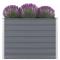 Jardinière 100x100x77 cm Acier galvanisé GrisCette jardinière surélevée est extrêmement durable et magnifiquement fabriquée. Grand espace : elle est assez profonde et large pour contenir d'importantes quantités de sol et offre suffisamment d'espace pour vos plantes, légumes, herbes et fleurs.Fond ouvert : Le design sans fond permet un bon drainage des plantes et empêche l'accumulation d'eau qui fait pourrir les racines des plantes. Cela permet également aux plantes de mieux absorber les nutriments. Tu peux le placer sur de la terre, de l'herbe ou du béton.Robuste et stable : elle est faite d'acier galvanisé et équipée de supports intérieurs, ce qui rend cette jardinière très robuste et durable.Bord plié : le bord de la jardinière dispose d'un design à bordures repliées, alors pas de danger provenant des bords tranchants.