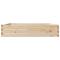 Jardinière 110x110x23 cm bois de pin massifCette jardinière en bois est un choix idéal pour cultiver une variété de fleurs ou de plantes. Cadre robuste et stable : le bois de pin massif est connu pour sa résistance et sa durabilité. Ses grains droits et ses noeuds distinctifs contribuent à son charme rustique.Grand espace : la jardinière est suffisamment profonde et large pour contenir une grande quantité de terre et offre suffisamment d'espace pour vos plantes, légumes, herbes et fleurs.Fonction décorative : cette jardinière de jardin peut contenir vos plantes ou fleurs préférées, ce qui est idéale pour votre jardin comme décoration.Fond ouvert : le fond ouvert assure un bon drainage de l'eau et une bonne respiration des plantes.