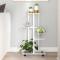 Jardinière à 4 niveaux avec roues 44x23x80 cm Blanc FerCe support à fleurs est une solution idéale pour conserver et exposer vos plantes et divers autres articles. Matériau de qualité supérieure : cette étagère d'angle pour plantes est fabriquée en fer, qui est durable et sans entretien, garantissant des années de service. Cadre solide et robuste : le cadre en fer du support pour plantes assure robustesse et stabilité.Étagère utile : le support vertical pour plantes est facile à installer dans un coin étroit. Il peut également servir de présentoir, d'étagère de rangement, etc.Design flexible : il est facile à déplacer grâce aux roues équipées.
