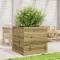 Jardinière 70x70x68,5 cm bois de pin imprégnéCette jardinière sera parfaite pour les amateurs de bricolage pour décorer les jardins, les balcons ou les patios. Bois imprégné : le bois de pin massif est un matériau naturel magnifique. Le bois de pin a un grain droit et les noeuds lui confèrent un aspect rustique caractéristique. L'imprégnation est un processus de conservation réalisé à l'aide d'autoclaves. Le traitement sous pression augmente la résistance à la pourriture et aux intempéries.Capacité généreuse : la jardinière d'extérieur offre beaucoup d'espace pour faire pousser tous vos légumes, fleurs et autres plantes.Fonction décorative : utilisez le bac à fleurs de terrasse pour créer votre propre petit jardin. Il apportera une atmosphère vivante et sera la décoration idéale pour votre espace de vie.
