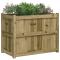 Jardinière 90x50x70 cm bois de pin imprégnéCette jardinière en bois sera parfaite pour les amateurs de bricolage pour décorer les jardins, les balcons ou les patios. Bois imprégné : le bois de pin massif est un matériau naturel magnifique. Le bois de pin a un grain droit et les noeuds lui confèrent un aspect rustique caractéristique. L'imprégnation est un processus de conservation réalisé à l'aide d'autoclaves. Le traitement sous pression augmente la résistance à la pourriture et aux intempéries.Capacité généreuse : la jardinière d'extérieur offre beaucoup d'espace pour faire pousser tous vos légumes, fleurs et autres plantes.Fonction décorative : utilisez le bac à fleurs de terrasse pour créer votre propre petit jardin. Il apportera une atmosphère vivante et sera la décoration idéale pour votre espace de vie. Bon à savoir :Pour que vos meubles d'extérieur restent beaux, nous vous recommandons de les protéger avec une housse imperméable.