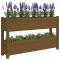 Jardinière Marron miel 112x25x66 cm Bois massif de pinCette jardinière en bois est un excellent choix pour les bricoleurs qui souhaitent décorer leur salon, balcon ou patio. Bois de pin massif : le bois de pin massif est un matériau naturel magnifique. Le bois de pin a un grain droit et les noeuds donnent au matériau son aspect caractéristique et rustique.Cadre stable : le cadre en bois assure robustesse et stabilité.Grand espace : ce lit surélevé comprend 2 bacs à fleurs pour la plantation, et chaque bac offre un grand espace de plantation pour faire pousser des légumes, des herbes, des fleurs et des plantes.Fonction décorative : la jardinière de jardin peut contenir vos plantes ou fleurs préférées, ce qui est idéale pour votre jardin comme décoration. Remarque :Chaque produit est livré avec un manuel de montage dans la boîte pour un montage facile.