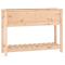 Jardinière avec étagère 111,5x34,5x81 cm Bois massif de pinCette jardinière en bois est un excellent choix pour les bricoleurs qui souhaitent décorer leur salon, balcon ou patio. Bois de pin massif : le bois de pin massif est un matériau naturel magnifique. Le bois de pin a un grain droit et les noeuds donnent au matériau son aspect caractéristique et rustique.Hauteur optimale : le lit surélevé, doté d'une hauteur de travail ergonomique optimale, vous permet de vous tenir debout ou de vous asseoir confortablement devant le bac à fleurs, et protège vos genoux et votre dos.Espace ample : ce pot de fleurs est doté d'une boîte à fleurs profonde pour la plantation, ce qui offre un vaste espace de plantation pour faire pousser des légumes, des herbes, des fleurs et des plantes.Étagère pratique : la jardinière est conçue avec une étagère, vous permettant de ranger le terreau et les accessoires de plantes à portée de main.Cadre stable : le cadre en bois du pot de jardin assure robustesse et stabilité. Remarque :Chaque produit est livré avec un manuel de montage dans la boîte pour un montage facile.