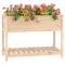 Jardinière avec étagère 111,5x54x81 cm Bois massif de pinCette jardinière en bois est un excellent choix pour les bricoleurs qui souhaitent décorer leur salon, balcon ou patio. Bois de pin massif : le bois de pin massif est un matériau naturel magnifique. Le bois de pin a un grain droit et les noeuds donnent au matériau son aspect caractéristique et rustique.Hauteur optimale : le lit surélevé, doté d'une hauteur de travail ergonomique optimale, vous permet de vous tenir debout ou de vous asseoir confortablement devant le bac à fleurs, et protège vos genoux et votre dos.Espace ample : ce pot de fleurs est doté d'une boîte à fleurs profonde pour la plantation, ce qui offre un vaste espace de plantation pour faire pousser des légumes, des herbes, des fleurs et des plantes.Étagère pratique : la jardinière est conçue avec une étagère, vous permettant de ranger le terreau et les accessoires de plantes à portée de main.Cadre stable : le cadre en bois du pot de jardin assure robustesse et stabilité. Remarque :Chaque produit est livré avec un manuel de montage dans la boîte pour un montage facile.