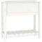 Jardinière avec étagère Blanc 82,5x34,5x81cm Bois massif de pinCette jardinière en bois est un excellent choix pour les bricoleurs qui souhaitent décorer leur salon, balcon ou patio. Bois de pin massif : le bois de pin massif est un matériau naturel magnifique. Le bois de pin a un grain droit et les noeuds donnent au matériau son aspect caractéristique et rustique.Hauteur optimale : le lit surélevé, doté d'une hauteur de travail ergonomique optimale, vous permet de vous tenir debout ou de vous asseoir confortablement devant le bac à fleurs, et protège vos genoux et votre dos.Espace ample : ce pot de fleurs est doté d'une boîte à fleurs profonde pour la plantation, ce qui offre un vaste espace de plantation pour faire pousser des légumes, des herbes, des fleurs et des plantes.Étagère pratique : la jardinière est conçue avec une étagère, vous permettant de ranger le terreau et les accessoires de plantes à portée de main.Cadre stable : le cadre en bois du pot de jardin assure robustesse et stabilité. Remarque :Chaque produit est livré avec un manuel de montage dans la boîte pour un montage facile.