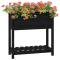 Jardinière avec étagère Noir 82,5x34,5x81 cm Bois massif de pinCette jardinière en bois est un excellent choix pour les bricoleurs qui souhaitent décorer leur salon, balcon ou patio. Bois de pin massif : le bois de pin massif est un matériau naturel magnifique. Le bois de pin a un grain droit et les noeuds donnent au matériau son aspect caractéristique et rustique.Hauteur optimale : le lit surélevé, doté d'une hauteur de travail ergonomique optimale, vous permet de vous tenir debout ou de vous asseoir confortablement devant le bac à fleurs, et protège vos genoux et votre dos.Espace ample : ce pot de fleurs est doté d'une boîte à fleurs profonde pour la plantation, ce qui offre un vaste espace de plantation pour faire pousser des légumes, des herbes, des fleurs et des plantes.Étagère pratique : la jardinière est conçue avec une étagère, vous permettant de ranger le terreau et les accessoires de plantes à portée de main.Cadre stable : le cadre en bois du pot de jardin assure robustesse et stabilité. Remarque :Chaque produit est livré avec un manuel de montage dans la boîte pour un montage facile.