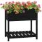 Jardinière avec étagère Noir 82,5x54x81 cm Bois massif de pinCette jardinière en bois est un excellent choix pour les bricoleurs qui souhaitent décorer leur salon, balcon ou patio. Bois de pin massif : le bois de pin massif est un matériau naturel magnifique. Le bois de pin a un grain droit et les noeuds donnent au matériau son aspect caractéristique et rustique.Hauteur optimale : le lit surélevé, doté d'une hauteur de travail ergonomique optimale, vous permet de vous tenir debout ou de vous asseoir confortablement devant le bac à fleurs, et protège vos genoux et votre dos.Espace ample : ce pot de fleurs est doté d'une boîte à fleurs profonde pour la plantation, ce qui offre un vaste espace de plantation pour faire pousser des légumes, des herbes, des fleurs et des plantes.Étagère pratique : la jardinière est conçue avec une étagère, vous permettant de ranger le terreau et les accessoires de plantes à portée de main.Cadre stable : le cadre en bois du pot de jardin assure robustesse et stabilité. Remarque :Chaque produit est livré avec un manuel de montage dans la boîte pour un montage facile.
