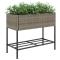 Jardinière avec étagère gris résine tresséeCette jardinière est un choix idéal pour cultiver une variété de fleurs ou de plantes. Matériau durable : la résine tressée, également connue sous le nom de poly rotin, est un matériau synthétique solide et nécessitant peu d'entretien qui ressemble au rotin naturel. Elle est légère, facile à nettoyer et couramment utilisée pour les meubles d'extérieur en raison de sa durabilité et de ses propriétés de résistance aux intempéries. Cadre robuste et stable : le cadre en acier enduit de poudre est solide, stable, durable et résistant à la corrosion et aux intempéries, ce qui garantit des performances durables. Deux possibilités d'utilisation : vous pouvez utiliser le sac non tissé comme doublure et remplir la jardinière de terre ou vous pouvez simplement mettre des pots de fleurs à l'intérieur. Étagère pratique : la jardinière est conçue avec une étagère, vous permettant de ranger le terreau et les accessoires de plantes à portée de main. De plus, l'étagère empêche l'eau, l'herbe et la saleté du sol d'entrer en contact avec le bac à plantes surélevé pour le garder propre et beau. Fonction décorative : le bac à fleurs peut contenir vos plantes ou fleurs préférées, ce qui est idéal pour votre jardin comme décoration.