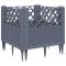 Jardinière avec piquets bleu gris 43,5x43,5x43,5 cm PPPlantez vos légumes, vos herbes aromatiques ou tout simplement des fleurs décoratives dans cette jardinière pratique et durable ! Matériau durable : le polypropylène est un plastique populaire qui est également l'un des matériaux les plus utilisés dans le mobilier d'extérieur. Il est léger, robuste et résistant aux chocs.Capacité généreuse : la jardinière d'extérieur offre beaucoup d'espace pour faire pousser tous vos légumes, fleurs et autres plantes.Conception modulaire : cette jardinière se compose de 4 panneaux qui peuvent être combinés librement. Vous pouvez simplement le changer d'un lit de jardin surélevé à une clôture de jardin selon vos besoins.Bel aspect rotin : la jardinière de jardin est conçue avec un aspect rotin, apportant un charme élégant à votre espace de vie.