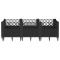 Jardinière avec piquets noir 123,5x43,5x43,5 cm PPPlantez vos légumes, vos herbes aromatiques ou tout simplement des fleurs décoratives dans cette jardinière pratique et durable ! Matériau durable : le polypropylène est un plastique populaire qui est également l'un des matériaux les plus utilisés dans le mobilier d'extérieur. Il est léger, robuste et résistant aux chocs.Capacité généreuse : la jardinière d'extérieur offre beaucoup d'espace pour faire pousser tous vos légumes, fleurs et autres plantes.Conception modulaire : cette jardinière se compose de 8 panneaux qui peuvent être combinés librement. Vous pouvez simplement le changer d'un lit de jardin surélevé à une clôture de jardin selon vos besoins.Bel aspect rotin : la jardinière de jardin est conçue avec un aspect rotin, apportant un charme élégant à votre espace de vie.