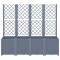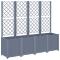 Jardinière avec treillis bleu gris 160x40x140 cm PPCette jardinière avec treillis est un excellent choix pour les plantes grimpantes dans votre jardin, sur votre patio et terrasse. Matériau durable : le polypropylène est un plastique populaire qui est également l'un des matériaux les plus utilisés dans le mobilier d'extérieur. Il est léger, robuste et résistant aux chocs.Capacité généreuse : la jardinière d'extérieur offre beaucoup d'espace pour faire pousser tous vos légumes, fleurs et autres plantes.Conception pratique : la couche inférieure idéale aide à retenir l'humidité et permet un drainage facile. De plus, le treillis intégré offre un excellent soutien pour cultiver des plantes grimpantes telles que des tomates, des pois et des roses.Conception modulaire : cette jardinière se compose de 4 bacs à fleurs qui peuvent être combinés librement selon vos besoins.Bel aspect de rotin : la jardinière de patio est conçue avec un aspect de rotin, apportant un charme élégant à votre espace de vie.