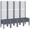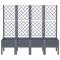 Jardinière avec treillis bleu gris 160x40x142 cm PPCette jardinière avec treillis est un excellent choix pour les plantes grimpantes dans votre jardin, sur votre patio et terrasse. Matériau durable : le polypropylène est un plastique populaire qui est également l'un des matériaux les plus utilisés dans le mobilier d'extérieur. Il est léger, robuste et résistant aux chocs.Capacité généreuse : la jardinière d'extérieur offre beaucoup d'espace pour faire pousser tous vos légumes, fleurs et autres plantes.Conception pratique : la couche inférieure idéale aide à retenir l'humidité et permet un drainage facile. De plus, le treillis intégré offre un excellent soutien pour cultiver des plantes grimpantes telles que des tomates, des pois et des roses.Bel aspect de rotin : la jardinière de patio est conçue avec un aspect de rotin, apportant un charme élégant à votre espace de vie.Design surélevé : le design surélevé de cette jardinière protège vos plantes des mauvaises herbes et des parasites.