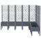 Jardinière avec treillis bleu gris 200x160x142 cm PPCette jardinière avec treillis est un excellent choix pour les plantes grimpantes dans votre jardin, sur votre patio et terrasse. Matériau durable : le polypropylène est un plastique populaire qui est également l'un des matériaux les plus utilisés dans le mobilier d'extérieur. Il est léger, robuste et résistant aux chocs.Capacité généreuse : la jardinière d'extérieur offre beaucoup d'espace pour faire pousser tous vos légumes, fleurs et autres plantes.Conception pratique : la couche inférieure idéale aide à retenir l'humidité et permet un drainage facile. De plus, le treillis intégré offre un excellent soutien pour cultiver des plantes grimpantes telles que des tomates, des pois et des roses.Bel aspect de rotin : la jardinière de patio est conçue avec un aspect de rotin, apportant un charme élégant à votre espace de vie.Design surélevé : le design surélevé de cette jardinière protège vos plantes des mauvaises herbes et des parasites.