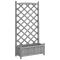 Jardinière avec treillis gris bois massif de sapinCette jardinière en bois avec treillis est un excellent choix pour les plantes grimpantes dans votre jardin, sur votre patio et terrasse. Bois de sapin massif : le bois de sapin massif est un matériau beau et durable qui conserve son intégrité même lorsqu'il est exposé à l'humidité. Il ne sèche pas et ne se déforme pas, ce qui en fait un choix fiable.Suffisamment d'espace : cette jardinière est assez large et profonde, ce qui offre suffisamment d'espace pour faire pousser une variété de plantes, de fleurs et de légumes. De plus, le fond creux permet une bonne ventilation et un bon drainage.Panneau de clôture en treillis : la jardinière de patio est livrée avec un magnifique panneau de clôture en treillis qui est parfait pour soutenir les plantes grimpantes et suspendues telles que les rosiers, le lierre ou les vignes. Il ajoute également une caractéristique visuelle étonnante à votre espace extérieur.Larges applications : cette jardinière d'extérieur est conçue avec une barre supérieure ronde, ce qui lui donne un aspect élégant et stylé qui complète tout espace extérieur. Elle peut être placée dans un coin du patio ou adossé à un mur ou à une clôture. Bon à savoir :La livraison comprend uniquement la jardinière ; la doublure n'est pas incluse.