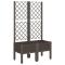 Jardinière avec treillis marron 80x40x142 cm PPCette jardinière avec treillis est un excellent choix pour les plantes grimpantes dans votre jardin, sur votre patio et terrasse. Matériau durable : le polypropylène est un plastique populaire qui est également l'un des matériaux les plus utilisés dans le mobilier d'extérieur. Il est léger, robuste et résistant aux chocs.Capacité généreuse : la jardinière d'extérieur offre beaucoup d'espace pour faire pousser tous vos légumes, fleurs et autres plantes.Conception pratique : la couche inférieure idéale aide à retenir l'humidité et permet un drainage facile. De plus, le treillis intégré offre un excellent soutien pour cultiver des plantes grimpantes telles que des tomates, des pois et des roses.Bel aspect de rotin : la jardinière de patio est conçue avec un aspect de rotin, apportant un charme élégant à votre espace de vie.Design surélevé : le design surélevé de cette jardinière protège vos plantes des mauvaises herbes et des parasites.