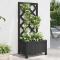 Jardinière avec treillis noir bois massif de sapinCette jardinière en bois avec treillis est un excellent choix pour les plantes grimpantes dans votre jardin, sur votre patio et terrasse. Bois de sapin massif : le bois de sapin massif est un matériau beau et durable qui conserve son intégrité même lorsqu'il est exposé à l'humidité. Il ne sèche pas et ne se déforme pas, ce qui en fait un choix fiable.Suffisamment d'espace : cette jardinière est assez large et profonde, ce qui offre suffisamment d'espace pour faire pousser une variété de plantes, de fleurs et de légumes. De plus, le fond creux permet une bonne ventilation et un bon drainage.Panneau de clôture en treillis : la jardinière de patio est livrée avec un magnifique panneau de clôture en treillis qui est parfait pour soutenir les plantes grimpantes et suspendues telles que les rosiers, le lierre ou les vignes. Il ajoute également une caractéristique visuelle étonnante à votre espace extérieur.Larges applications : cette jardinière d'extérieur a une apparence naturelle et élégante, elle est parfaite pour tout jardin. Elle peut être placée dans un coin du patio ou adossé à un mur ou à une clôture. Bon à savoir :La livraison comprend uniquement la jardinière ; la doublure n'est pas incluse.