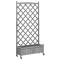 Jardinière avec treillis et roues gris bois massif de sapinCette jardinière en bois avec treillis et roues est un excellent choix pour les plantes grimpantes dans votre jardin, sur votre patio et terrasse. Bois de sapin massif : le bois de sapin massif est un matériau beau et durable qui conserve son intégrité même lorsqu'il est exposé à l'humidité. Il ne sèche pas et ne se déforme pas, ce qui en fait un choix fiable.Suffisamment d'espace : cette jardinière est assez large et profonde, ce qui offre suffisamment d'espace pour faire pousser une variété de plantes, de fleurs et de légumes. De plus, le fond creux permet une bonne ventilation et un bon drainage.Panneau de clôture en treillis : la jardinière de patio est livrée avec un magnifique panneau de clôture en treillis qui est parfait pour soutenir les plantes grimpantes et suspendues telles que les rosiers, le lierre ou les vignes. Il ajoute également une caractéristique visuelle étonnante à votre espace extérieur.Roues pratiques : la roue solide facilite le déplacement de votre jardinière lorsque la roue est fixée.Larges applications : cette jardinière d'extérieur est conçue avec une barre supérieure ronde, ce qui lui donne un aspect élégant et stylé qui complète tout espace extérieur. Elle peut être placée dans un coin du patio ou adossé à un mur ou à une clôture. Bon à savoir :La livraison comprend uniquement la jardinière ; la doublure n'est pas incluse.