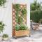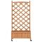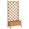 Jardinière avec treillis et roues marron bois massif de sapinCette jardinière en bois avec treillis et roues est un excellent choix pour les plantes grimpantes dans votre jardin, sur votre patio et terrasse. Bois de sapin massif : le bois de sapin massif est un matériau beau et durable qui conserve son intégrité même lorsqu'il est exposé à l'humidité. Il ne sèche pas et ne se déforme pas, ce qui en fait un choix fiable.Suffisamment d'espace : cette jardinière est assez large et profonde, ce qui offre suffisamment d'espace pour faire pousser une variété de plantes, de fleurs et de légumes. De plus, le fond creux permet une bonne ventilation et un bon drainage.Panneau de clôture en treillis : la jardinière de patio est livrée avec un magnifique panneau de clôture en treillis qui est parfait pour soutenir les plantes grimpantes et suspendues telles que les rosiers, le lierre ou les vignes. Il ajoute également une caractéristique visuelle étonnante à votre espace extérieur.Roues pratiques : la roue solide facilite le déplacement de votre jardinière lorsque la roue est fixée.Larges applications : cette jardinière d'extérieur est conçue avec une barre supérieure ronde, ce qui lui donne un aspect élégant et stylé qui complète tout espace extérieur. Elle peut être placée dans un coin du patio ou adossé à un mur ou à une clôture. Bon à savoir :La livraison comprend uniquement la jardinière ; la doublure n'est pas incluse.