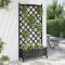 Jardinière avec treillis et roues noir bois massif de sapinCette jardinière en bois avec treillis et roues est un excellent choix pour les plantes grimpantes dans votre jardin, sur votre patio et terrasse. Bois de sapin massif : le bois de sapin massif est un matériau beau et durable qui conserve son intégrité même lorsqu'il est exposé à l'humidité. Il ne sèche pas et ne se déforme pas, ce qui en fait un choix fiable.Suffisamment d'espace : cette jardinière est assez large et profonde, ce qui offre suffisamment d'espace pour faire pousser une variété de plantes, de fleurs et de légumes. De plus, le fond creux permet une bonne ventilation et un bon drainage.Panneau de clôture en treillis : la jardinière de patio est livrée avec un magnifique panneau de clôture en treillis qui est parfait pour soutenir les plantes grimpantes et suspendues telles que les rosiers, le lierre ou les vignes. Il ajoute également une caractéristique visuelle étonnante à votre espace extérieur.Roues pratiques : la roue solide facilite le déplacement de votre jardinière lorsque la roue est fixée.Larges applications : cette jardinière d'extérieur est conçue avec une barre supérieure ronde, ce qui lui donne un aspect élégant et stylé qui complète tout espace extérieur. Elle peut être placée dans un coin du patio ou adossé à un mur ou à une clôture. Bon à savoir :La livraison comprend uniquement la jardinière ; la doublure n'est pas incluse.