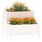 Jardinière blanc 84,5x84x75 cm bois massif de pinCette jardinière en bois indispensable est un excellent choix pour les bricoleurs qui souhaitent décorer leurs salons, balcons et patios. Bois de pin massif : le bois de pin massif est un matériau naturel magnifique. Le bois de pin a un grain droit et les noeuds donnent au matériau son aspect caractéristique et rustique.Cadre stable : le cadre en bois assure robustesse et stabilité.Grand espace : ce lit surélevé comprend 2 bacs à fleurs pour la plantation, et chaque bac offre un grand espace de plantation pour faire pousser des légumes, des herbes, des fleurs et des plantes.Conception à 2 niveaux : la conception à 2 niveaux de ce pot de fleurs affiche magnifiquement vos fleurs et permet aux plantes d'obtenir plus de soleil et de mieux pousser. En outre, cette jardinière est un beau supplément à votre salon, terrasse ou jardin. Remarque :Chaque produit est livré avec un manuel de montage dans la boîte pour un montage facile.