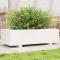 Jardinière blanc 90x40x26,5 cm bois de pin massifCette jardinière en bois est un choix idéal pour cultiver une variété de fleurs ou de plantes. Cadre robuste et stable : le bois de pin massif est connu pour sa résistance et sa durabilité. Ses grains droits et ses noeuds distinctifs contribuent à son charme rustique.Grand espace : la jardinière est suffisamment profonde et large pour contenir une grande quantité de terre et offre suffisamment d'espace pour vos plantes, légumes, herbes et fleurs.Fonction décorative : cette jardinière de jardin peut contenir vos plantes ou fleurs préférées, ce qui est idéale pour votre jardin comme décoration.