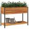 Jardinière et étagère 110x45x80cm bois massif d'acacia et acierCette jardinière en bois est un excellent choix pour les bricoleurs qui souhaitent décorer leur salon, balcon ou patio. Cadre stable et durable : le bois d'acacia massif est connu pour sa solidité et sa durabilité. Ses couleurs variées et ses grains uniques lui confèrent un aspect attrayant. Sa stabilité et sa résistance aux intempéries en font un matériau idéal pour la fabrication de meubles d'intérieur et d'extérieur.Cadre robuste : le cadre en acier enduit de poudre est solide, stable, durable et résistant à la corrosion et aux intempéries, ce qui garantit des performances durables.Grand espace de plantation : la jardinière peut contenir vos plantes ou fleurs préférées, ce qui est idéal pour votre intérieur comme décoration.Étagère pratique : la jardinière est conçue avec une étagère, vous permettant de ranger le terreau et les accessoires de plantes à portée de main.Fonction décorative : le bac à fleurs peut contenir vos plantes ou fleurs préférées, ce qui est idéal pour votre jardin comme décoration.