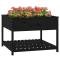 Jardinière et étagère Noir 111,5x111,5x81 cm Bois massif de pinCette jardinière en bois est un excellent choix pour les bricoleurs qui souhaitent décorer leur salon, balcon ou patio. Bois de pin massif : le bois de pin massif est un matériau naturel magnifique. Le bois de pin a un grain droit et les noeuds donnent au matériau son aspect caractéristique et rustique.Hauteur optimale : le lit surélevé, doté d'une hauteur de travail ergonomique optimale, vous permet de vous tenir debout ou de vous asseoir confortablement devant le bac à fleurs, et protège vos genoux et votre dos.Espace ample : ce pot de fleurs est doté d'une boîte à fleurs profonde pour la plantation, ce qui offre un vaste espace de plantation pour faire pousser des légumes, des herbes, des fleurs et des plantes.Étagère pratique : la jardinière est conçue avec une étagère, vous permettant de ranger le terreau et les accessoires de plantes à portée de main.Cadre stable : le cadre en bois du pot de jardin assure robustesse et stabilité. Remarque :Chaque produit est livré avec un manuel de montage dans la boîte pour un montage facile.